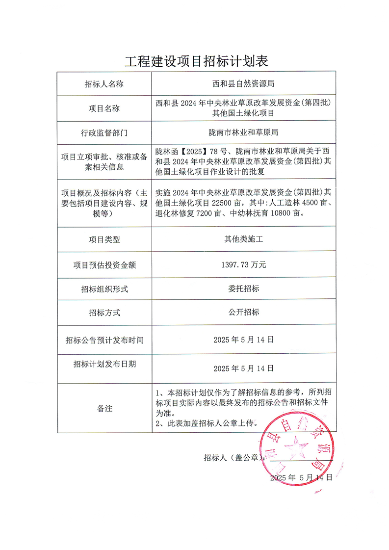 西和縣2024年中央林業(yè)草原改革發(fā)展資金(第四批)其他國土綠化項目