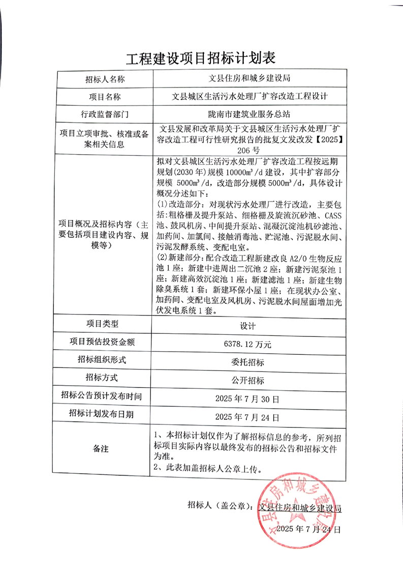 文縣城區(qū)生活污水處理廠擴容改造工程設(shè)計