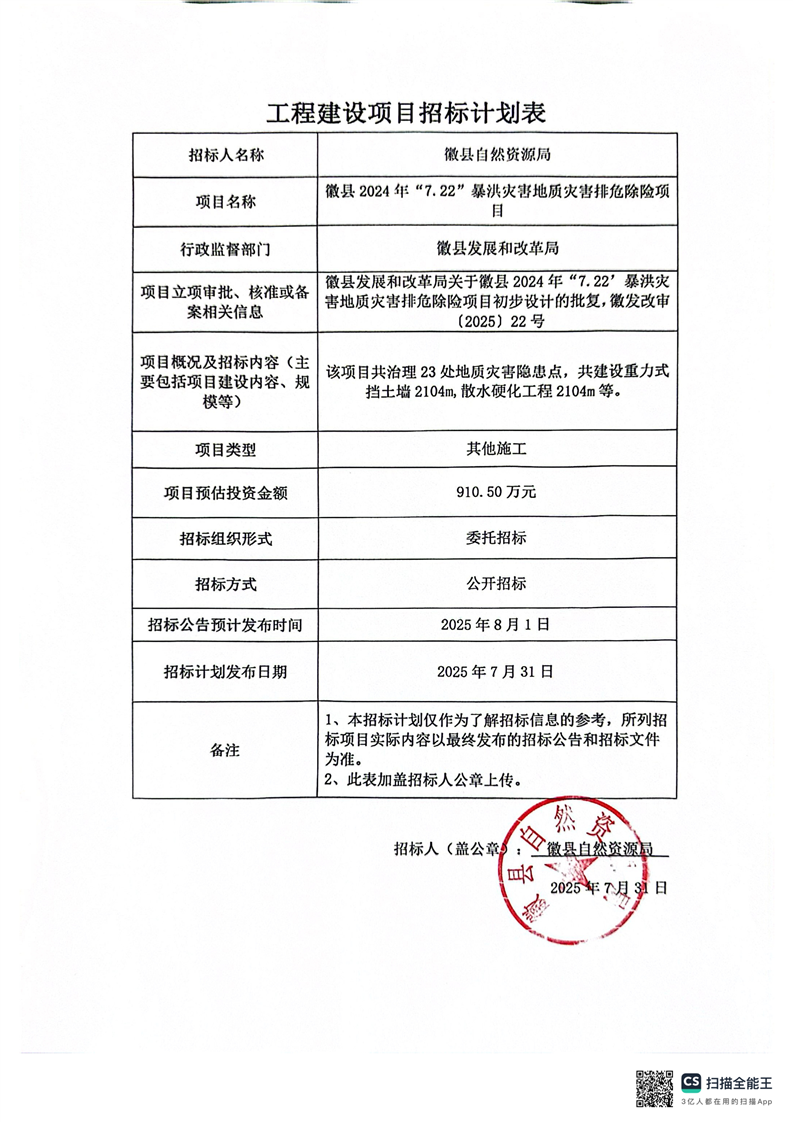 徽縣2024年“7.22”暴洪災(zāi)害地質(zhì)災(zāi)害排危除險項目