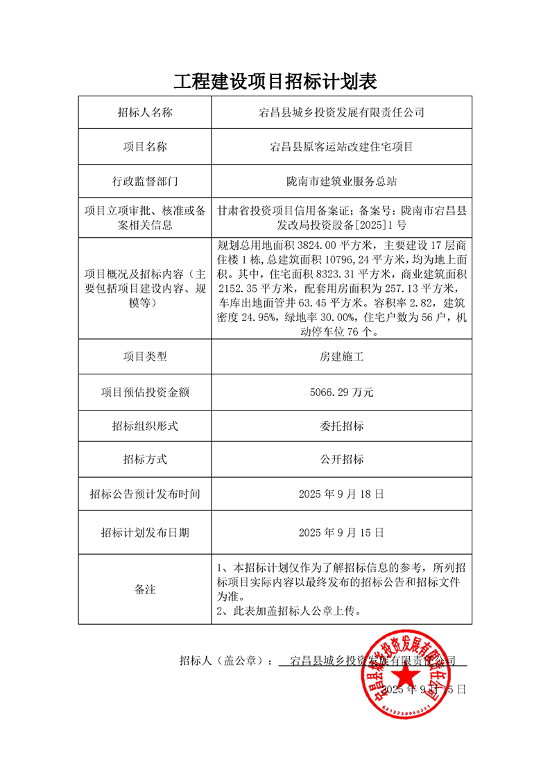 宕昌縣原客運站改建住宅項目項目計劃.pdf