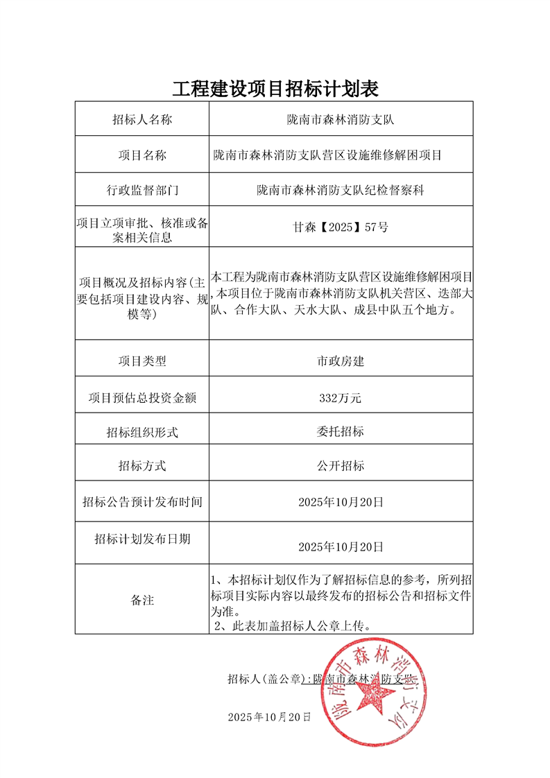 隴南市森林消防支隊(duì)營(yíng)區(qū)設(shè)施維修解困項(xiàng)目