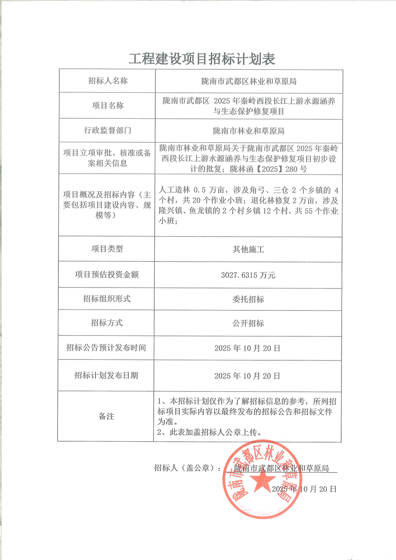 隴南市武都區(qū)2025年秦嶺西段長江上游水源涵養(yǎng)與生態(tài)保護(hù)修復(fù)項目