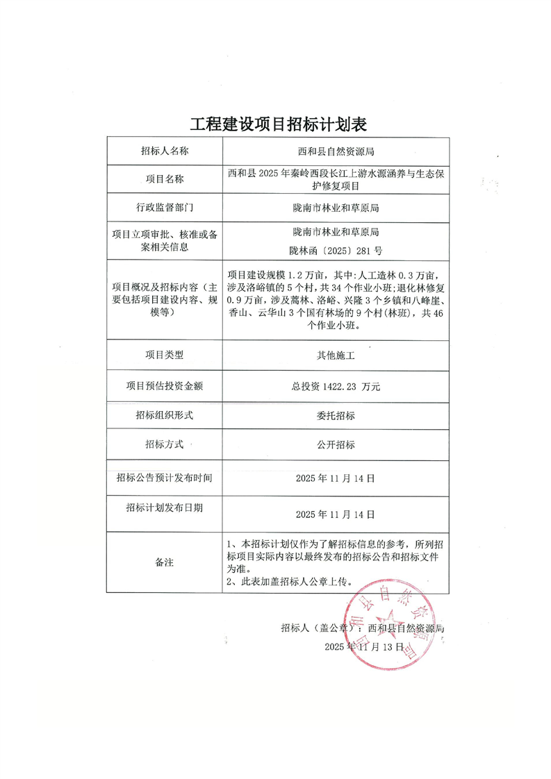 西和縣2025年秦嶺西段長江上游水源涵養(yǎng)與生態(tài)保護修復項目