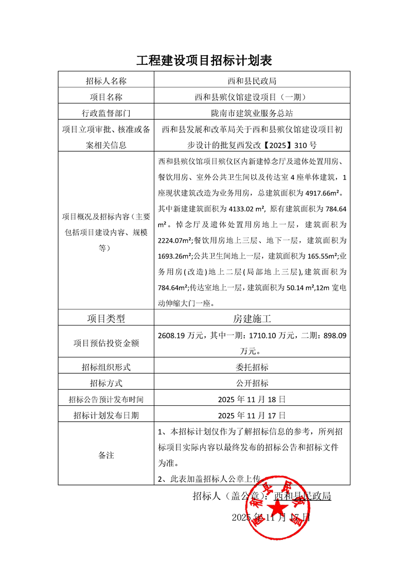 附件:西和縣民政局工程建設(shè)項目招標計劃表.pdf