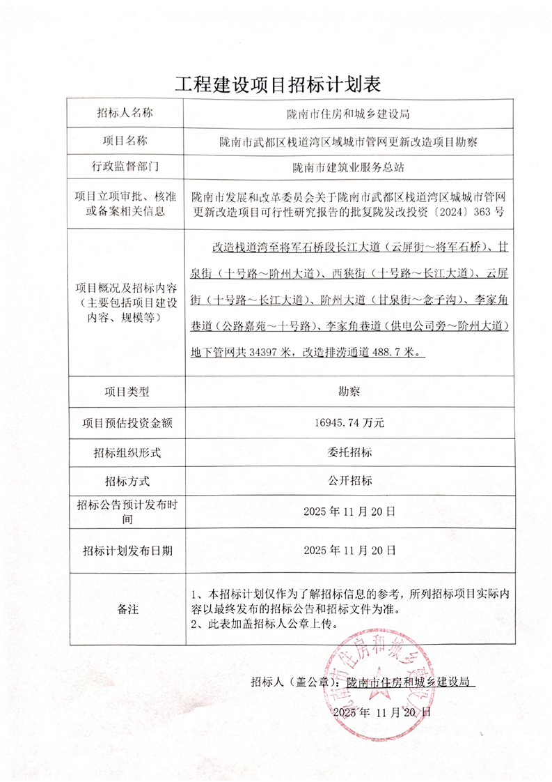 隴南市武都區(qū)棧道灣區(qū)域城市管網(wǎng)更新改造項(xiàng)目勘察