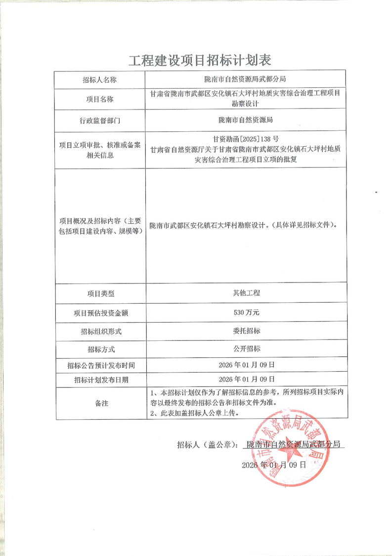 甘肅省隴南市武都區(qū)安化鎮(zhèn)石大坪村地質(zhì)災害綜合治理工程項目勘察設(shè)計