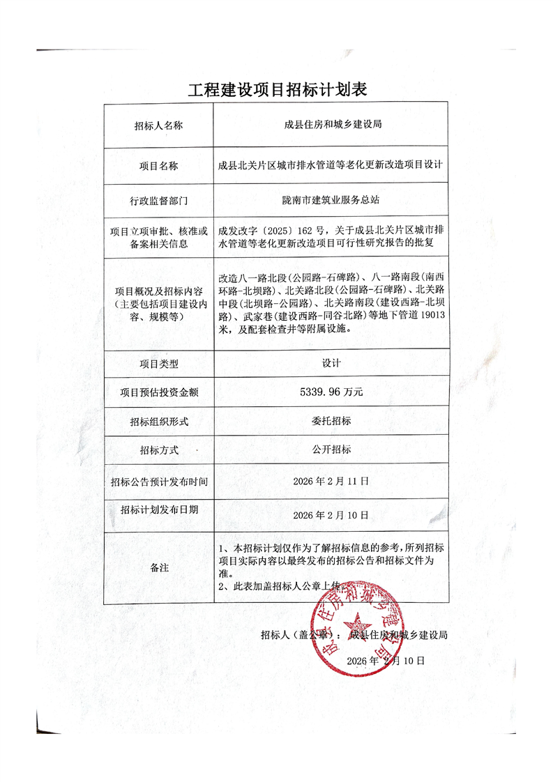成縣北關(guān)片區(qū)城市排水管道等老化更新改造項目設(shè)計