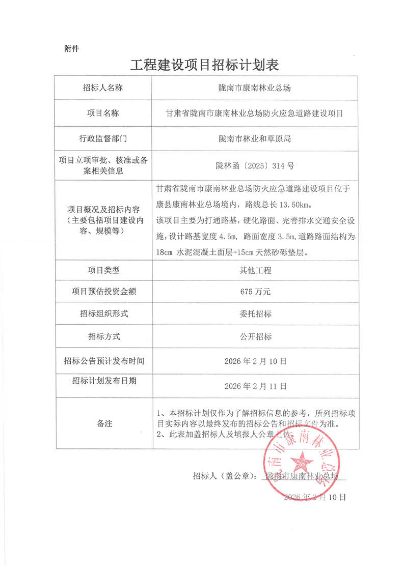 甘肅省隴南市康南林業(yè)總場防火應(yīng)急道路建設(shè)項(xiàng)目