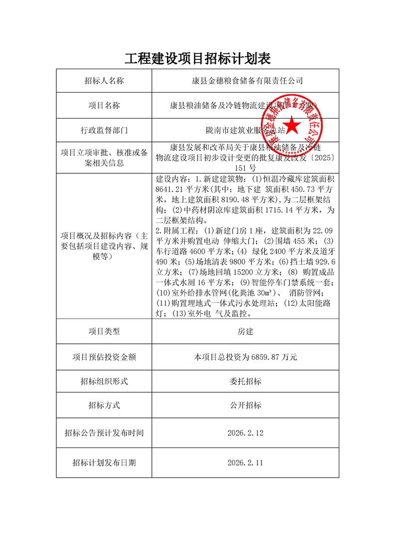 康縣糧油儲(chǔ)備及冷鏈物流建設(shè)項(xiàng)目(二期)