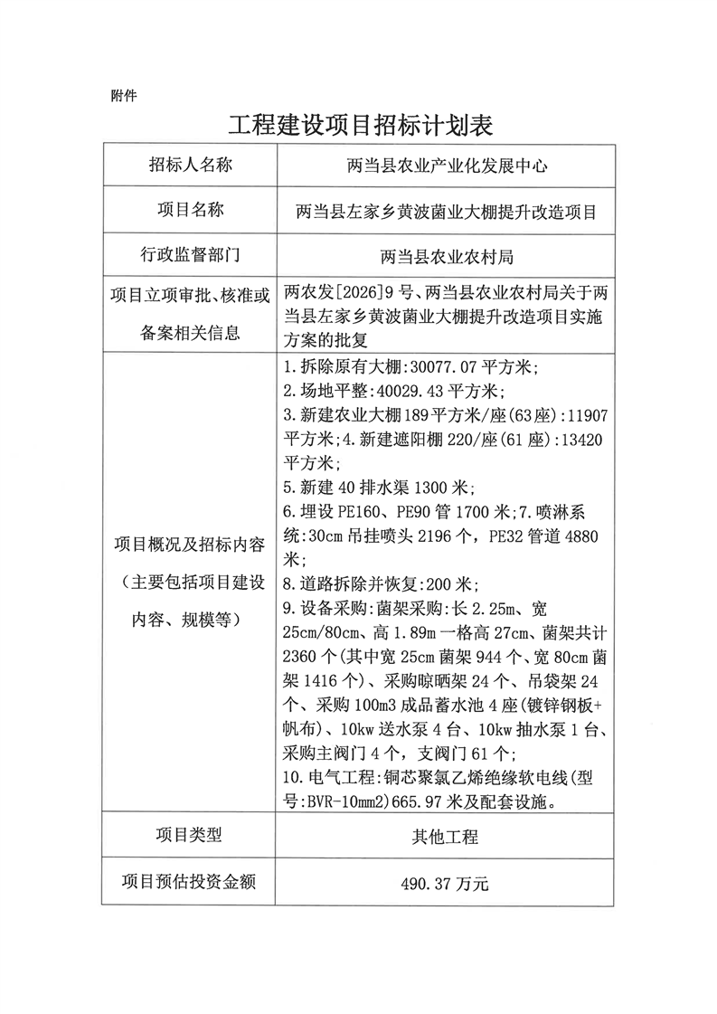 兩當(dāng)縣左家鄉(xiāng)黃波菌業(yè)大棚提升改造項(xiàng)目