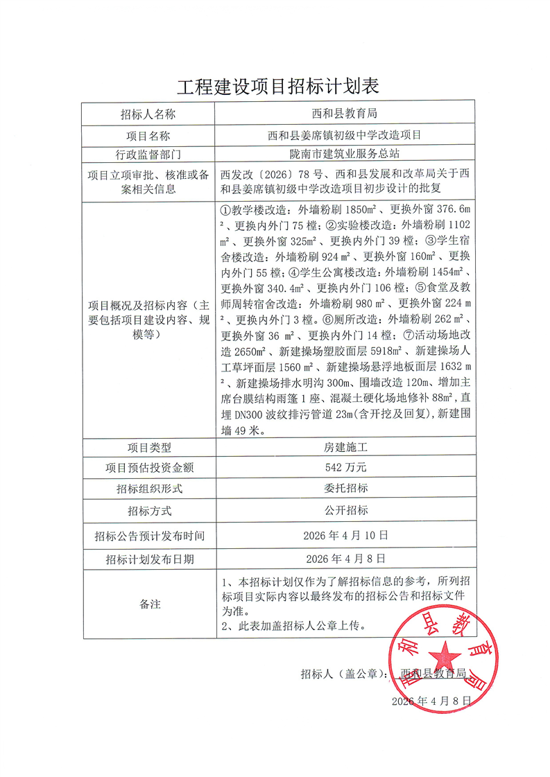 附件:西和姜席初級(jí)中學(xué)招標(biāo)計(jì)劃表.pdf