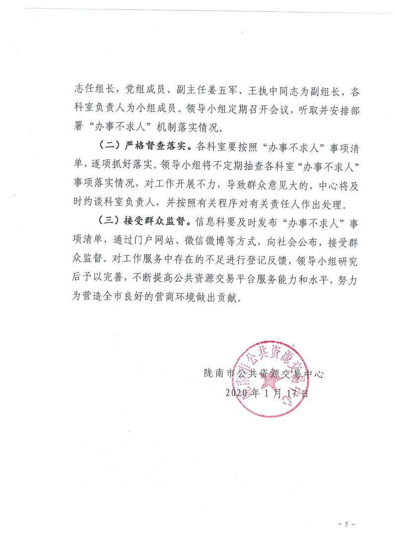 隴南市公共資源交易中心關(guān)于加快建立“辦事不求人”機(jī)制深化“放管服”改革的通知
