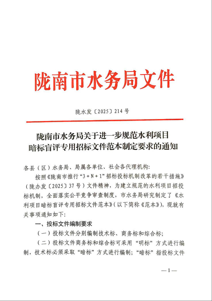 附件:附件:隴南市水利項目盲標暗評專用招標文件范本(1).pdf 附件:水利類-材料采購模板.docx 附件:水利類-監(jiān)理模板.docx 附件:水利類-設計模板.docx 附件:水利類-施工模板.docx